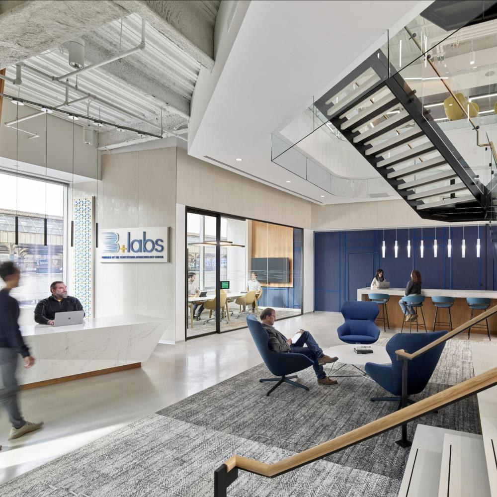 B+labs is located at Cira Centre in our Schuylkill Yards neighborhood, within both a QOZ and a KIZ. The building has a direct connection to Amtrak’s 30th Street Station, access to a 1,500+ space parking garage, and proximity to the Philadelphia International Airport—allowing for seamless connection to neighboring innovation clusters. Companies can draw top talent from Drexel University, the University of Pennsylvania, Children’s Hospital of Philadelphia, and a number of other world-class healthcare and academic institutions.