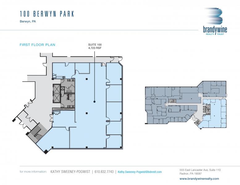Nestled within a picturesque park setting, 100 Berwyn Park is one of four Class A office buildings that comprise Berwyn Park. Conveniently located with immediate access to Route 252 (Swedesford Road), Route 202 and the Pennsylvania Turnpike (I-276), the campus boasts a full-service delicatessen, two fitness centers, and a conference facility on-site.